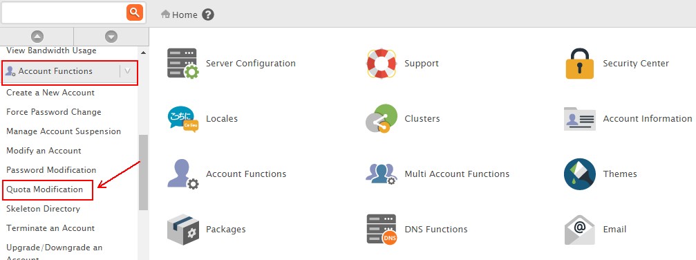 The following article shows how to change/ edit your Account's Package and modify Disk Space.